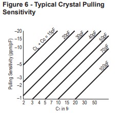 其中C1、C0和C1都用相同的單位表示。 圖5顯示了頻率變化影響的典型曲線 關于負載電容的變化。 或者,通常將晶體的可拉性表示為切邊 負載電容變化的靈敏度,單位為ppm/pF。這是在 ppm/pF由: 其中C1、C0和CL以pF為單位,如圖6所示 對于(C0 + CL)的各種值。石英晶體諧振器極高的Q值相對較小的尺寸和出色的溫度穩(wěn)定