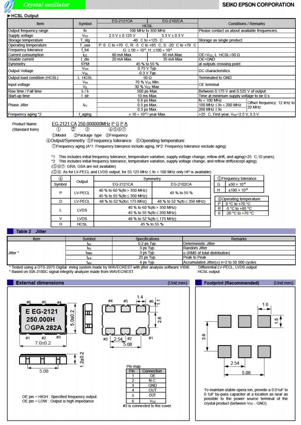 | Q3805CA10011700 | EG-2121CA | 250.000000 MHz | 7.00 x 5.00 x 1.20 mm | LVDS | 2.375 to 2.625 V | 0 to 70 °C |