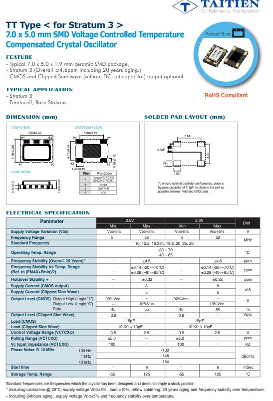 | TTETTLJANF-50.000000 | Taitien | TT | TCXO | 50MHz | 2.8 V ~ 3.3 V |