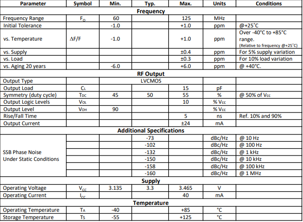 高穩(wěn)定性+/-1ppm,保證20年內(nèi)+/-6ppm
