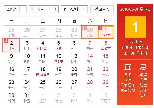 大家好!五一國際勞動(dòng)節(jié)將至,根據(jù)《國務(wù)院辦公廳公布2016年放假安排》,結(jié)合公司的實(shí)際情況,現(xiàn)就2016年五一放假安排通知如下:4月30日(星期六)至5月2日(星期一)共3天.5月3日(星期二)正常上班.