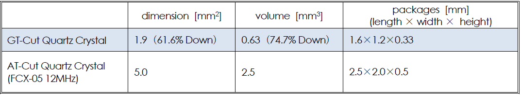 GT-cut石英晶體單元最初是在20世紀(jì)40年代作為具有卓越頻率-溫度特性的部件開(kāi)發(fā)的,它在毛坯制造方面提出了挑戰(zhàn),限制了體積生產(chǎn)。另一方面,AT-cut石英晶體單元近年來(lái)出現(xiàn)了向支持更高頻率以響應(yīng)更小封裝的趨勢(shì),產(chǎn)生對(duì)更小封裝的需求,在較低MHz頻率下工作的低功率單元。