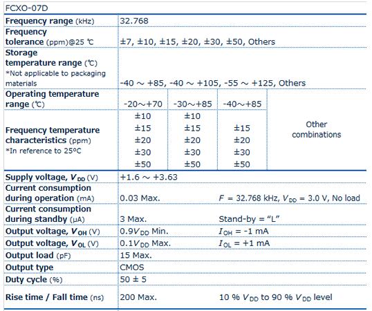 FCXO-07D晶振的時(shí)鐘輸出緊湊的設(shè)計(jì)(1.6mm×1.2mm×0.7mm最大,重量:4.1mg).實(shí)現(xiàn)32.768kHZ具有較好的溫度特性比音叉晶體(1 / 10特征曲線的垂直寬度.)更快的上升時(shí)間,更高的頻率精度比調(diào)諧叉晶體.用電子束密封的陶瓷封裝和金屬蓋,保證了更高的精度和可靠性.無鉛焊接可用.符合RoHS.隨著AEC-Q200依從性的可能性.應(yīng)用:筆記本電腦、智能機(jī)器人、智能家居、DSC、DVC、W-LAN、Smart meter.