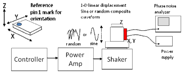 由于外力的方向,持續(xù)時間和強度可能不同,因此測量振蕩器在各種測試條件下的電響應非常重要,以充分了解它們對沖擊和振動的敏感性.SiTime晶振評估振蕩器對三種不同振動或沖擊模式的響應:(1)正弦振動,(2)隨機振動和(3)脈沖沖擊.測試的器件都是市售產(chǎn)品,包括SiTime和一家競爭對手的基于微機電系統(tǒng)的振蕩器,以及幾家制造商的基于石英的振蕩器.我們包括帶有表面聲波晶體諧振器的石英振蕩器,已知在高工作頻率下具有低抖動.