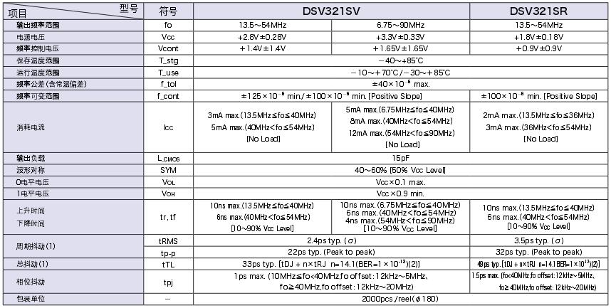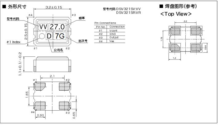 DSV321SR振蕩器:3225尺寸、厚度1.1mm、小型SMD-VCXO.雖然小型但確保充足的可變量,頻率發(fā)生線性變化的模擬類型VCXO,低消耗電流.適用于DVD、數(shù)字TV、STB、ADSL、基干傳輸用等產(chǎn)品.頻率范圍可達(dá)13.5~54MHZ.屬于工業(yè)級晶振.可耐高溫,經(jīng)過專業(yè)檢測認(rèn)證屬于無鉛環(huán)保產(chǎn)品. 2016、2520、3225、5032系列貼片晶振成為了市場的主流尺寸.