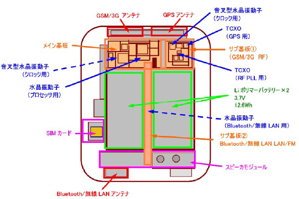 以蘋果公司的"iPad3G機型"為例,對水晶元件的使用方法進行說明.iPad內(nèi)部的模式圖如圖1所示,使用用諧振器元件如表1所示.