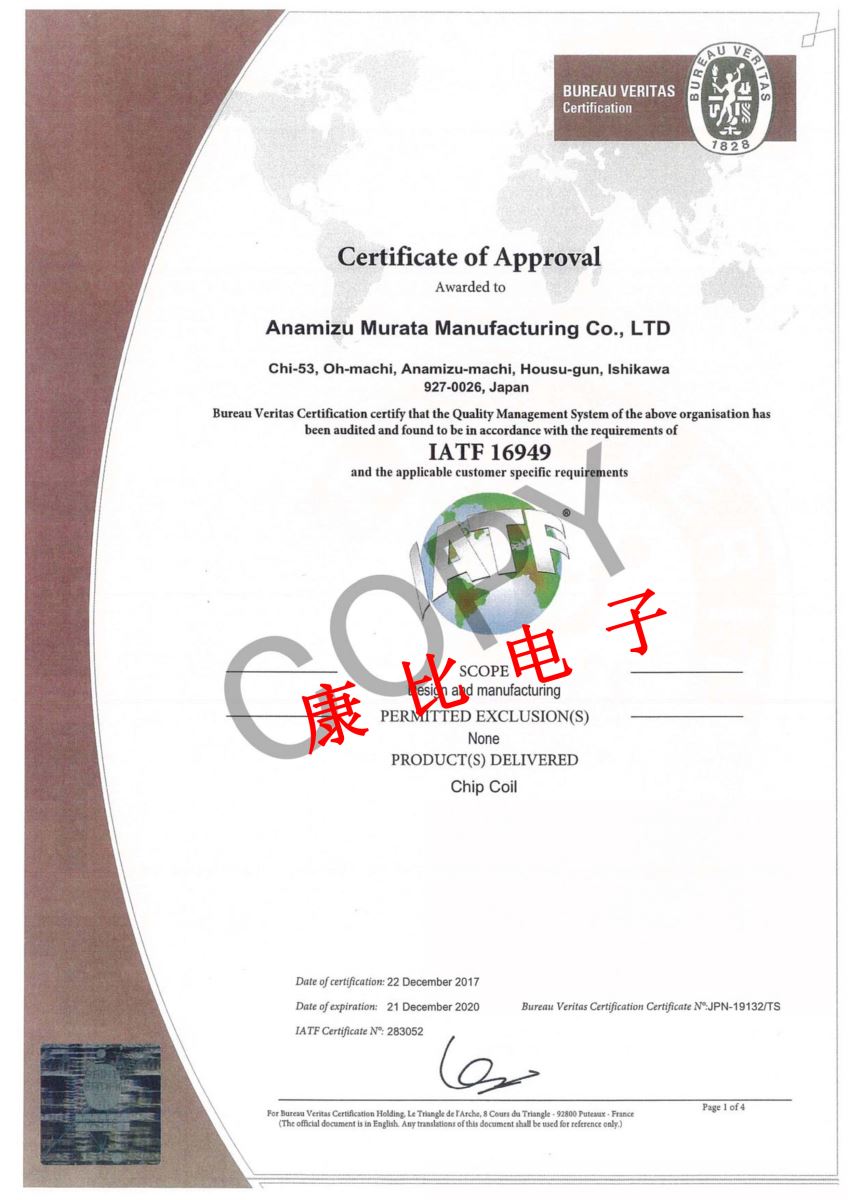更多>>村田制作所IATF 16949汽車安全認(rèn)證