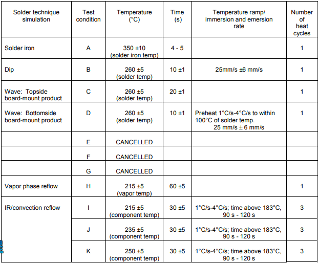 對流回流環(huán)境.測試條件F被取消;使用測試條件B.