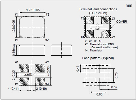 • 在同一氣密室內(nèi)(即晶振體內(nèi))內(nèi)置水晶片與溫度傳感器(熱敏電阻),更能檢出與水晶片相近的溫度.由此,相比以往的晶體諧振器,可以改善其頻率溫度補(bǔ)正.