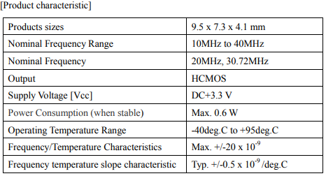 (*1)該特性表示恒溫晶振相對(duì)于溫度變化的溫度特性,數(shù)值越小,頻率隨環(huán)境溫度變化的變化越小.