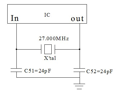 2.理論值負(fù)載電容計(jì)算方式如下,由C51 C52計(jì)算串聯(lián)電容后加上離散電容等于實(shí)際的負(fù)載電容,雜散電容內(nèi)含PCB Layout、芯片電極等等因素造成.