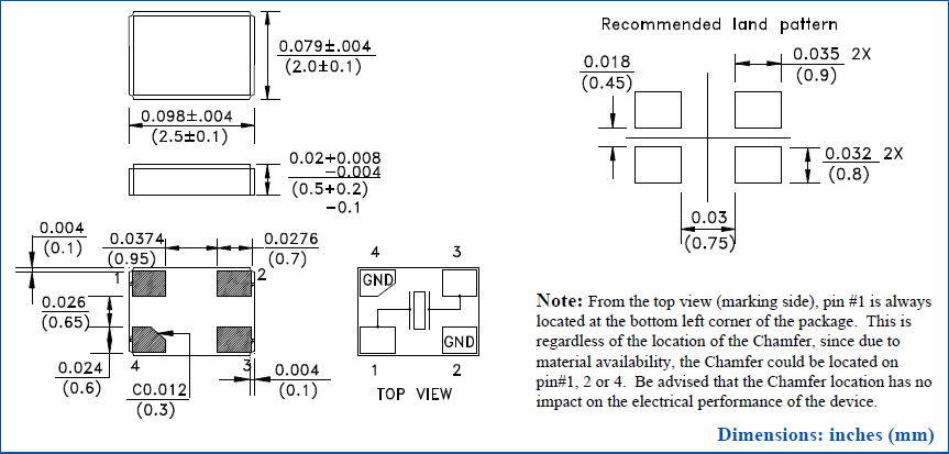 | 頻率溫度特征 | f_tem | ±30 × 10-6/-20°C ~ +70°C | 超出標準的規(guī)格請聯(lián)系我們. |