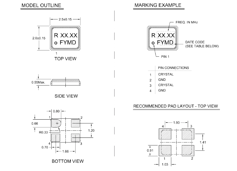 | 頻率溫度特征 | f_tem | ±30 × 10-6/-20°C ~ +70°C | 超出標準的規(guī)格請聯(lián)系我們. |