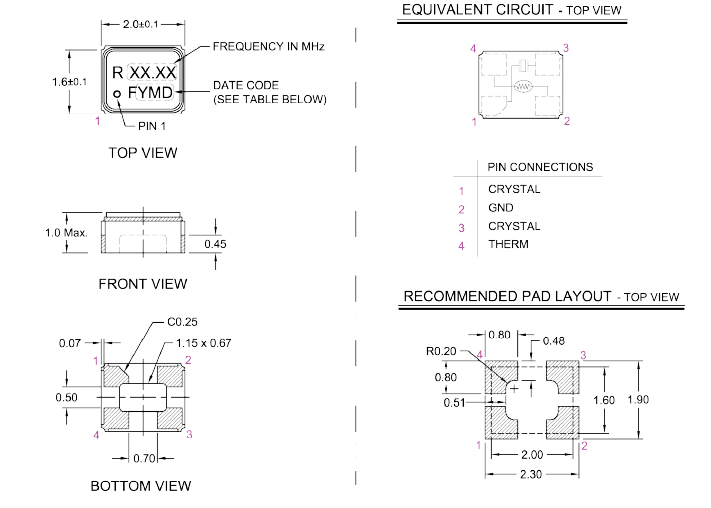 | 頻率溫度特征 | f_tem | ±30 × 10-6/-20°C ~ +70°C | 超出標準的規(guī)格請聯(lián)系我們. |