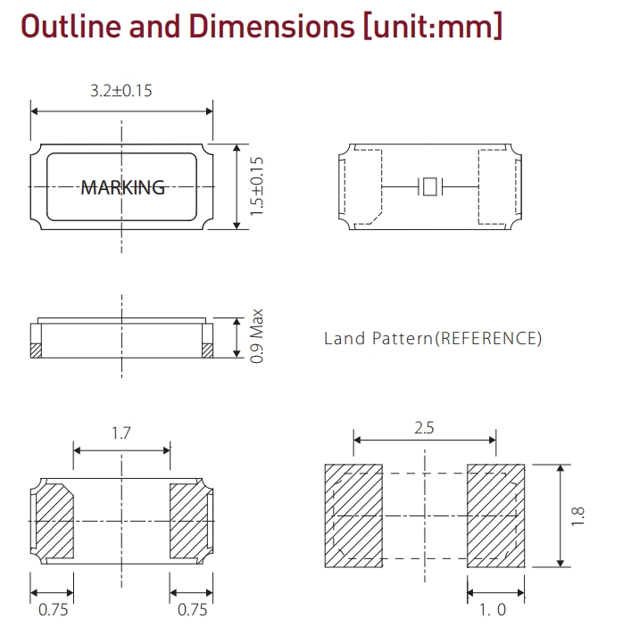 XTL721-S999-429,Siward希華晶振,6G智能計(jì)量晶振 尺寸圖