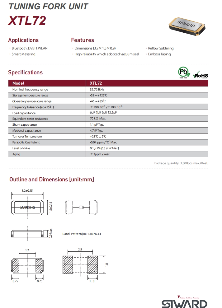 | XTL721-S999-286 | Siward | Siward | CRYSTAL 32.768 KHZ 20PPM CRYSTAL | XTL72 | 32.768 kHz | ±20ppm | 12.5pF |