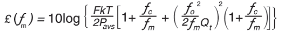其中Q1是電路的負(fù)載Q,m是來自載波的頻率,c是閃爍噪聲角頻率,o是載波(振蕩器)頻率,T是開爾文溫度,Paves是通過諧振器的功率,F是有源器件的噪聲系數(shù),k是Boltzmann常數(shù).