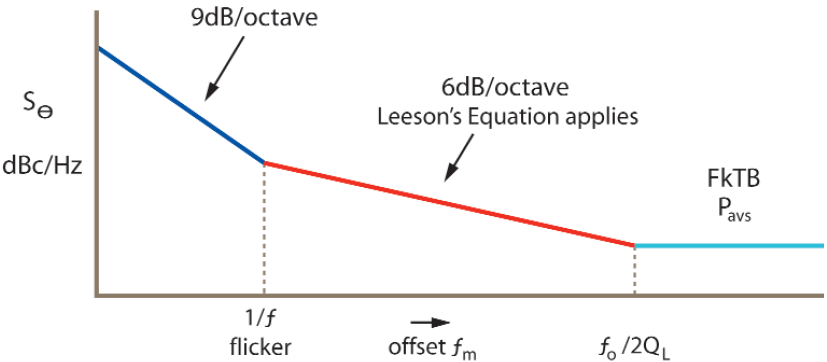 圖2:相位噪聲圖,顯示了決定因素