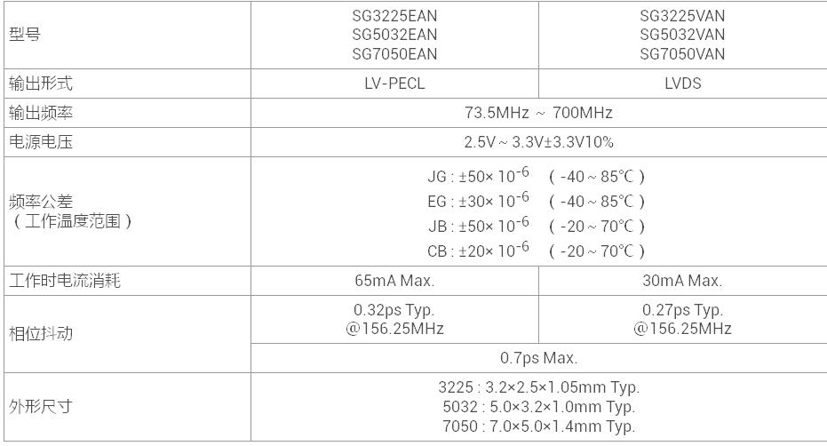 這兩款晶振的頻率公差為±20×10-6、相位抖動為0.27ps typ.※4,具備了高精度、高穩(wěn)定性能,又實現(xiàn)了-40℃至+85℃的較大的工作溫度范圍,輸出形式采用了市場需求強烈的LV-PECL和LVDS兩種.