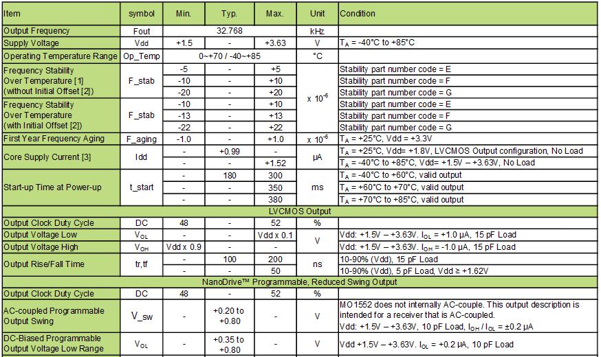 公司在石英晶振的研發(fā)、生產(chǎn)方面投入了大量的資源,具備了多年經(jīng)驗.日本大真空晶振已經(jīng)成為晶體行業(yè)的知名品牌.根據(jù)市場需求研發(fā)了新型MEMS振蕩器KHZ系列.以及KHZ溫補晶振.MO1552振蕩器是大真空集團研發(fā)的主要適用于:智能電表、健康和健康監(jiān)視器、每秒的計時脈沖、RTC的參考時鐘等相關(guān)產(chǎn)品.頻率為32.768KHZ.精度選擇主要有:±5ppm、±10ppm、±20ppm. 超低功耗:+ 990 nA(典型值).內(nèi)部濾波消除了外部VDD旁路電容.